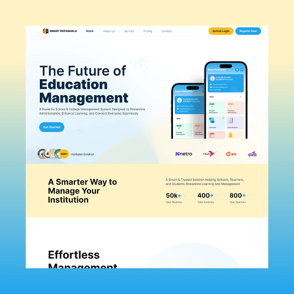 A modern school and college management system that I built to simplify and digitalize institutional operations. The platform bridges communication between schools, teachers, students, and parents, offering tools for attendance tracking, class scheduling, result management, announcements, and more. My focus was on creating an intuitive, responsive interface and a robust backend to ensure real-time updates and seamless collaboration across all user roles.